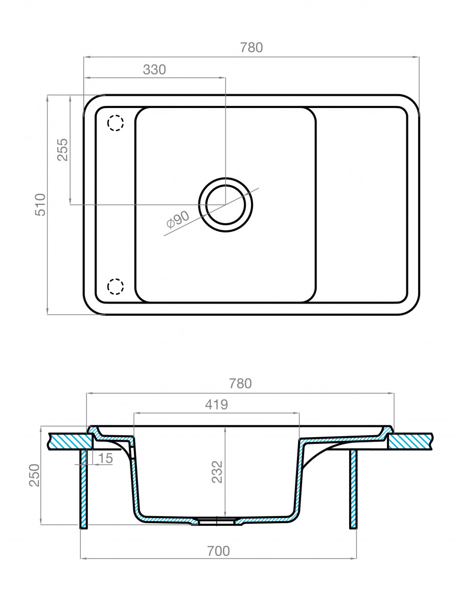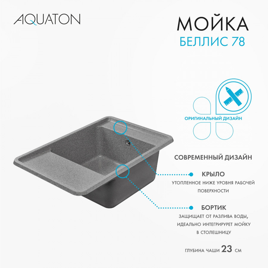 Мойка для кухни Беллис 78 780x510x250 мм, прямоуг., серый