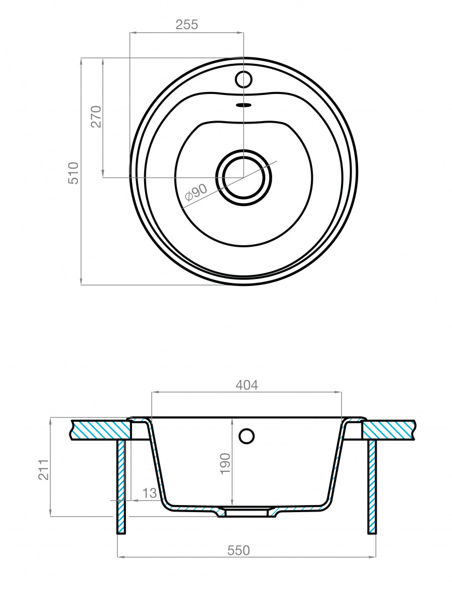 Мойка для кухни Мида 510x510x210 мм,круглая, серый шелк