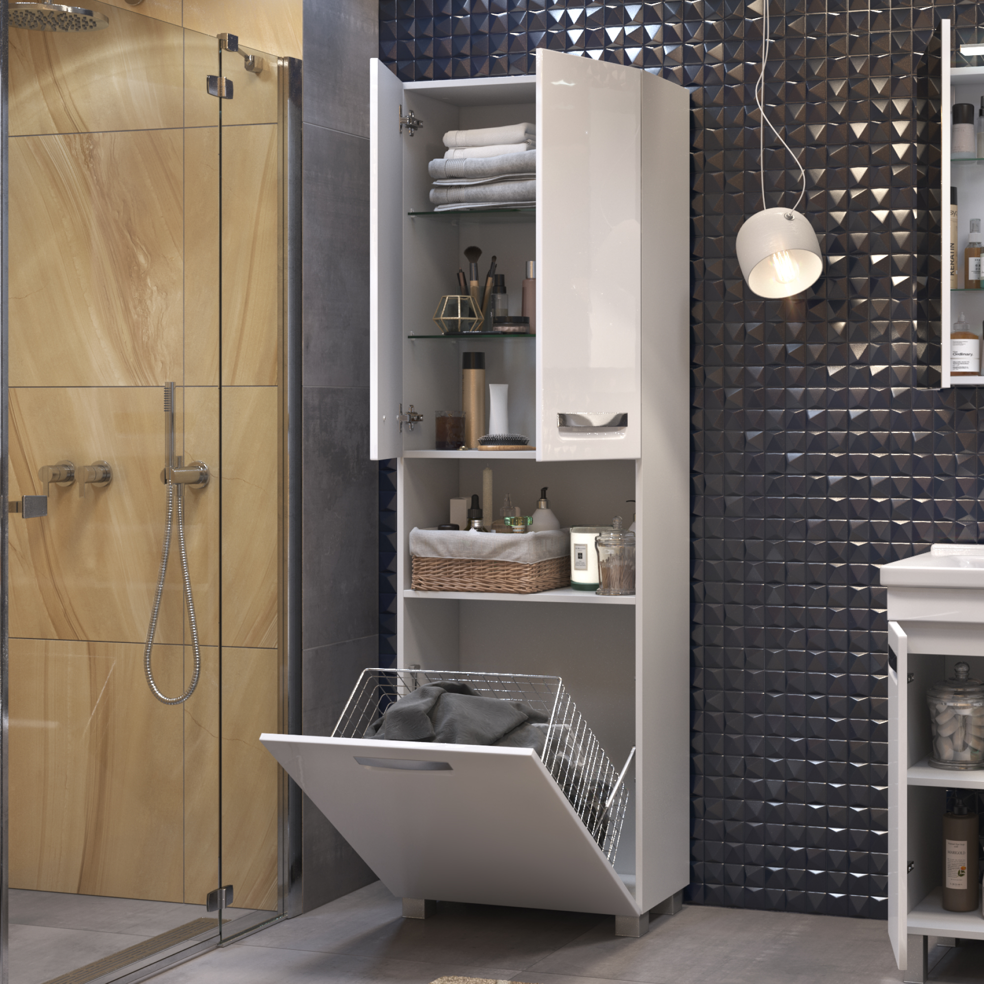 2 дверцы; 1 ящик с бельевой корзиной;