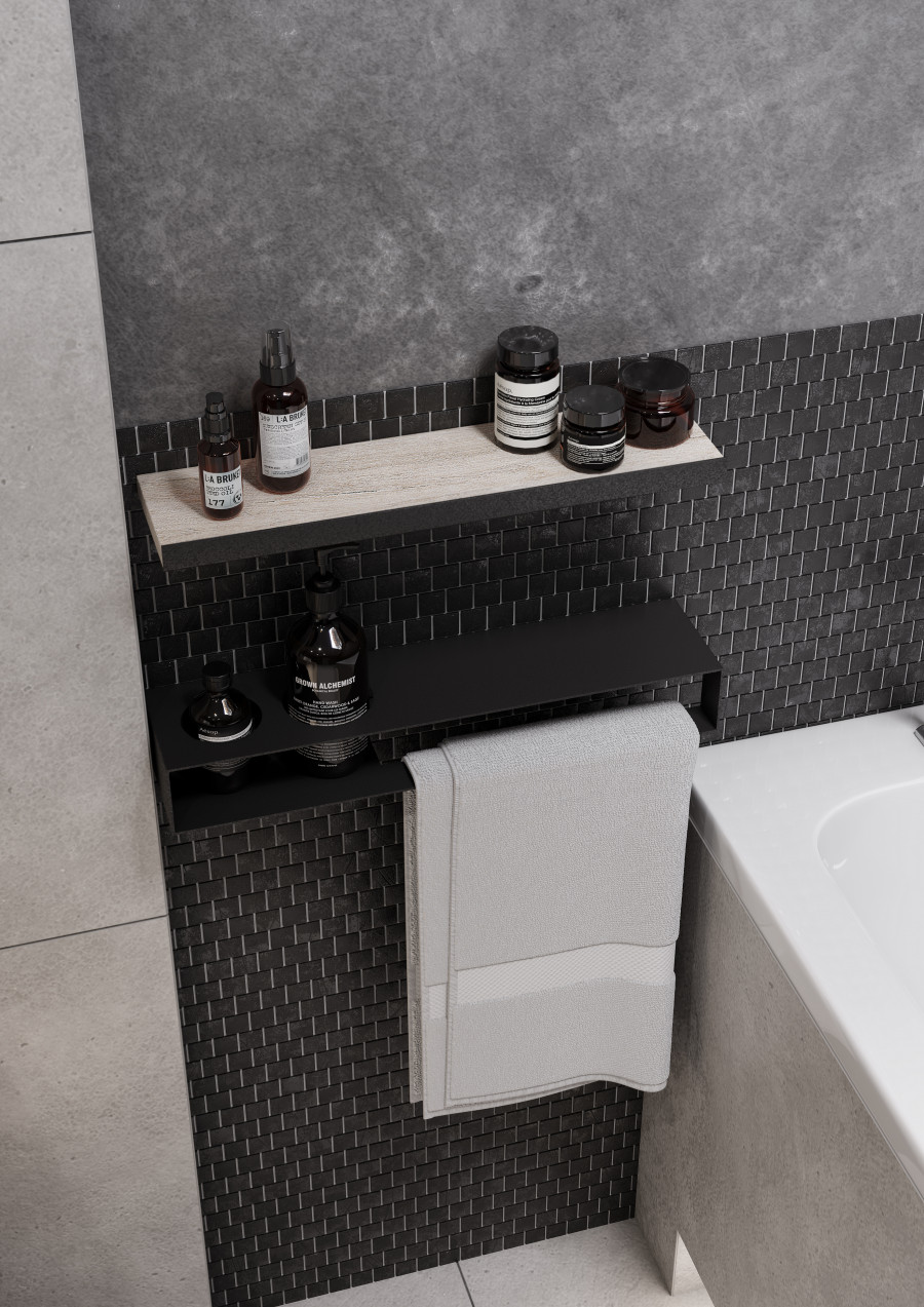 Открытая полка, выполненная в дизайне коллекции Лофт Урбан для создания единого интерьера ванной комнаты, позволит разместить декоративные или косметические средства. Полка выполнена из влагостойкой ламинированной ДСП в цвете дуб орегон с отделкой из металлического профиля.