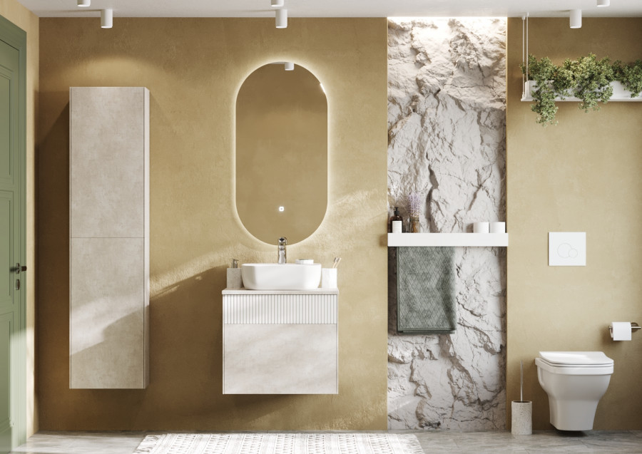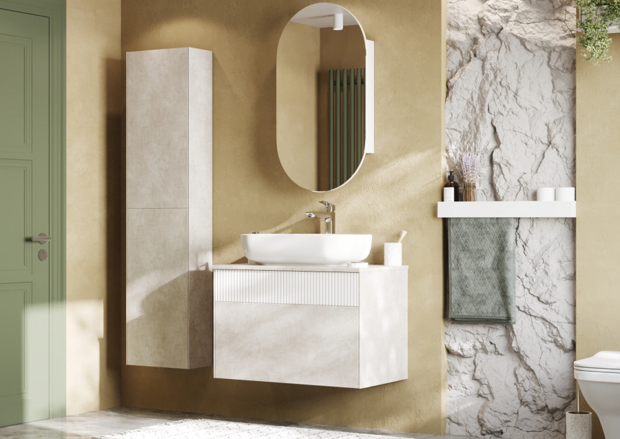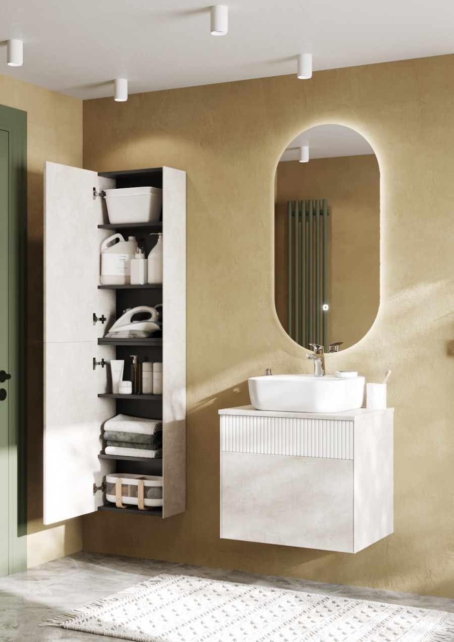 Дополняет коллекцию предметов мебели Марбл шкафчик в созвучном дизайне: боковые стенки и фасад выполнены из ВЛДСП Слэйт. Внутри две регулируемые полки из ламинированной влагостойкой ДСП в цвете антрацит - перекликаются с внутренним оформлением ящиков тумб коллекции Марбл. Навесной шкафчик имеет как левую, так и правую ориентации - достаточно лишь перевернуть изделие на 180 градусов. При желании также можно собрать полноценную колонну из двух навесных шкафов.