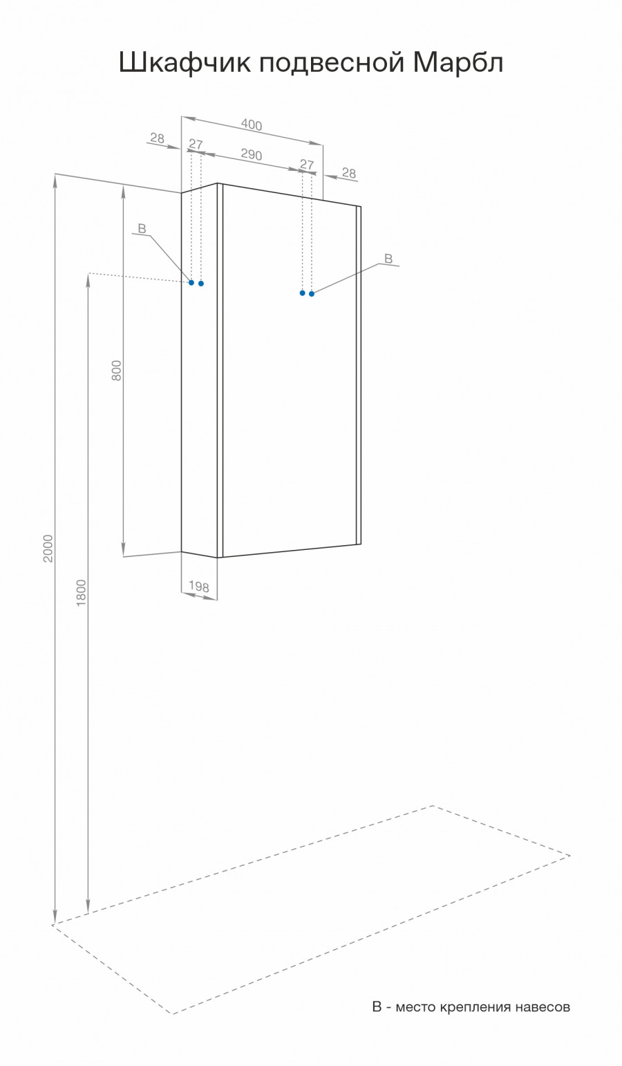 Шкаф навесной МАРБЛ 40, подвесной, слейт
