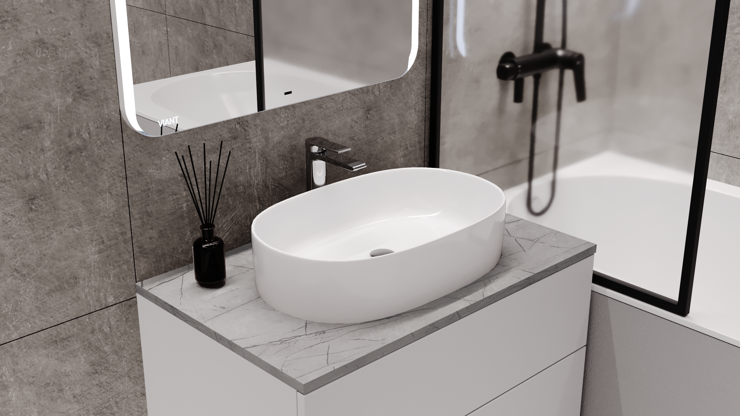 Столешница VIANT Neo. Цвет: антик мрамор, размер: 600х460х20 мм. Артикул: VNEO60MRAN-STMDF. Монтаж: на тумбу/ на кронштейн.