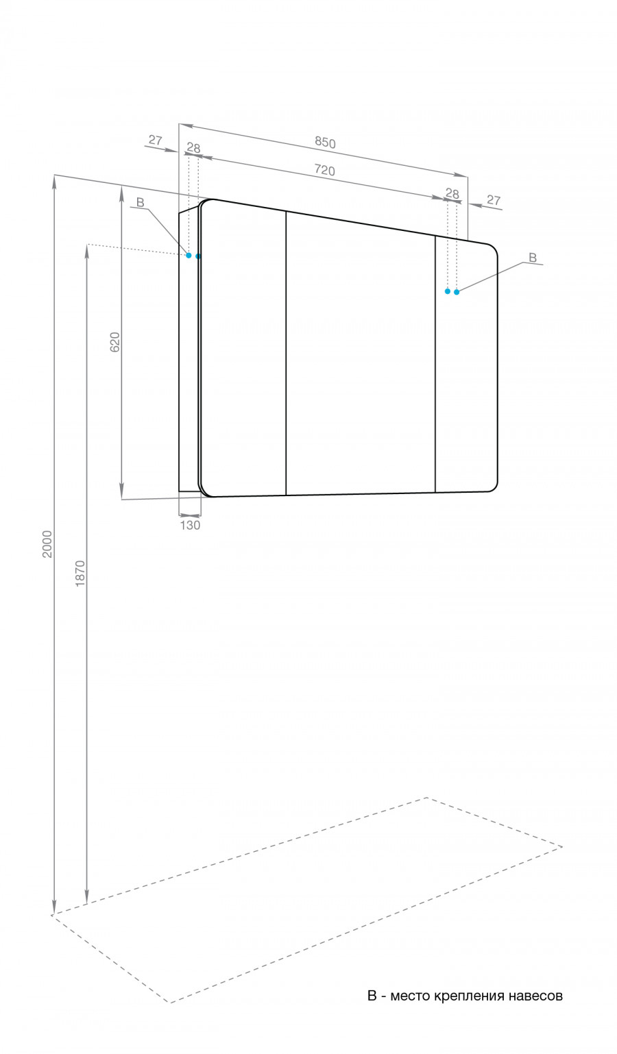 Зеркальный шкаф АР-ДЕКО 85, кашемир