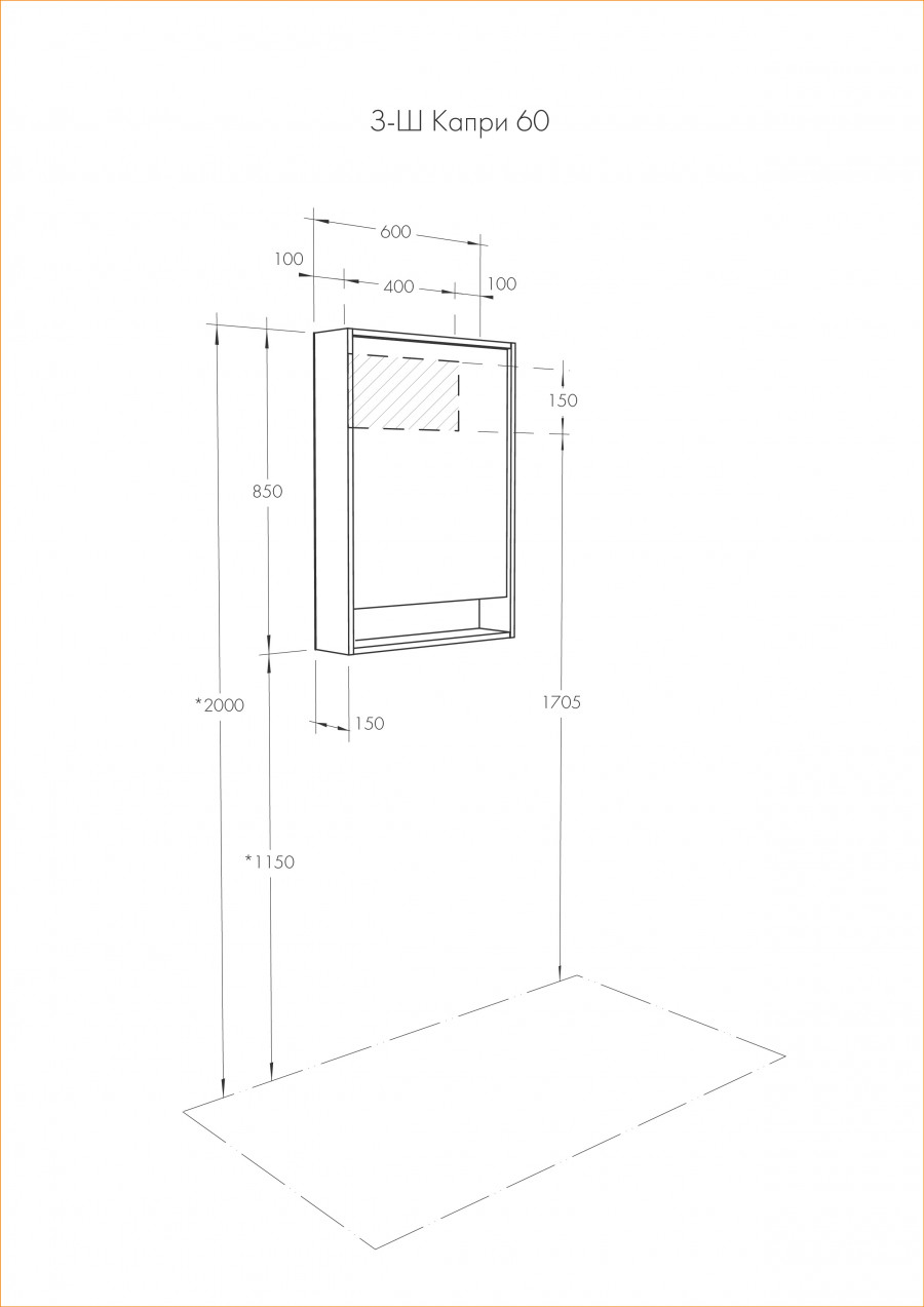 Зеркальный шкаф КАПРИ 60, бетон пайн