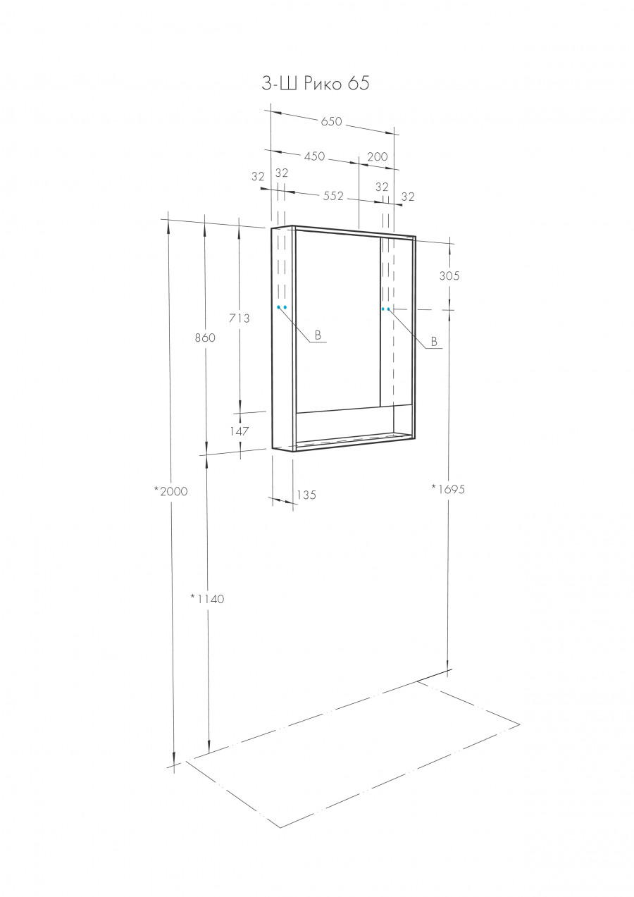 Зеркальный шкаф РИКО 65, белый, ясень фабрик