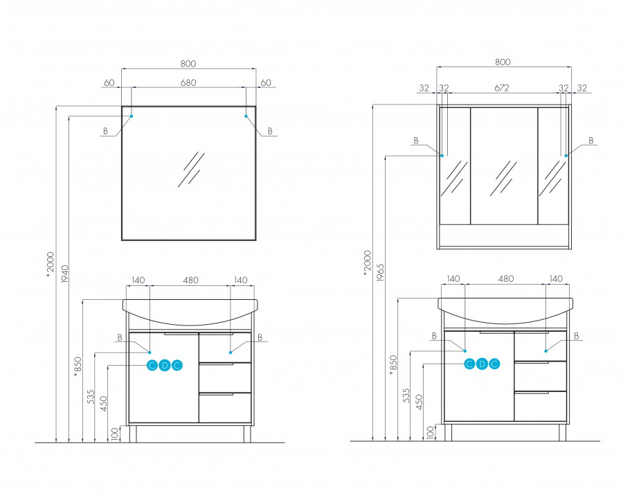 Зеркальный шкаф РИКО 80, белый, ясень фабрик