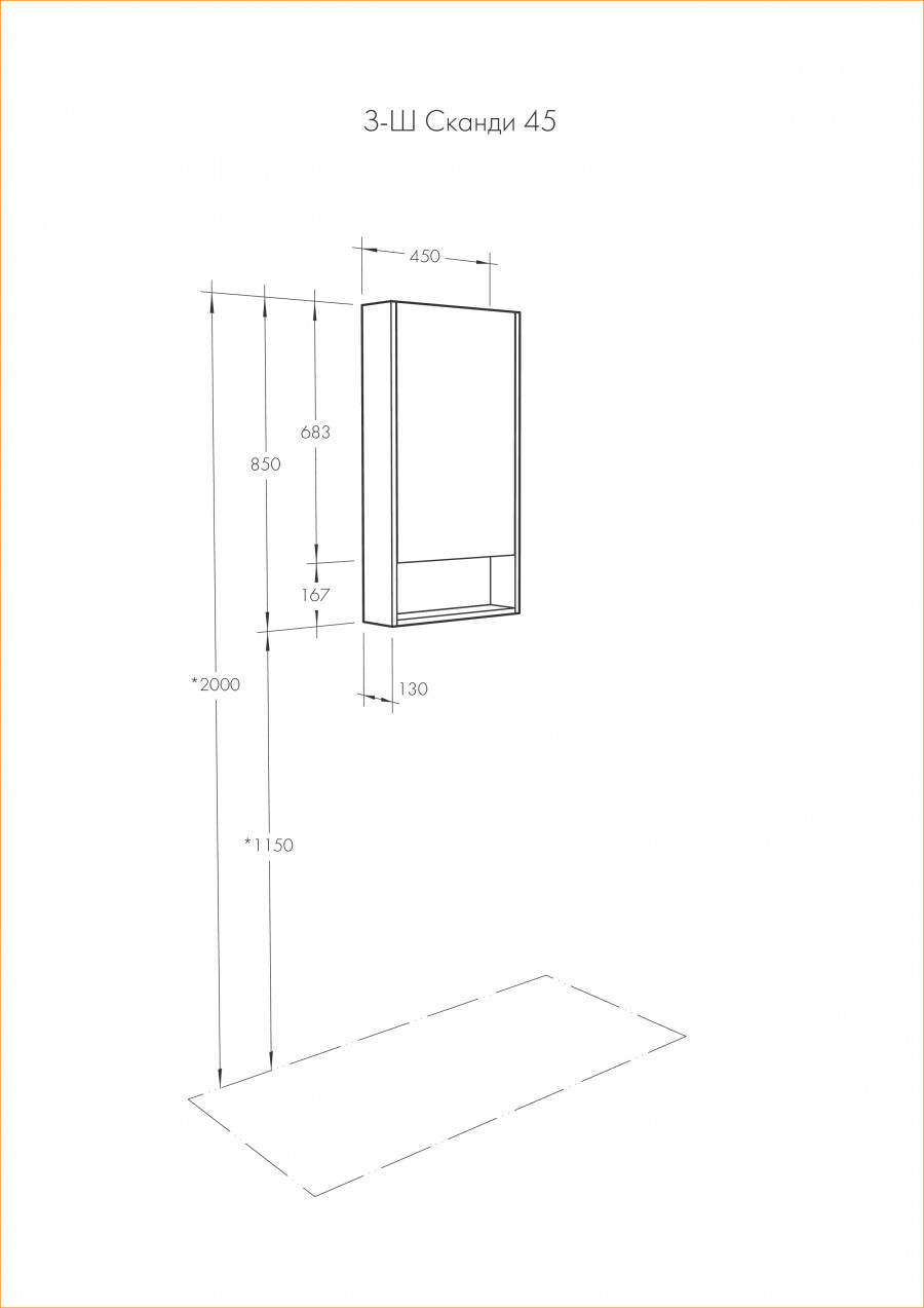 Зеркальный шкаф СКАНДИ 45, подвесной, белый