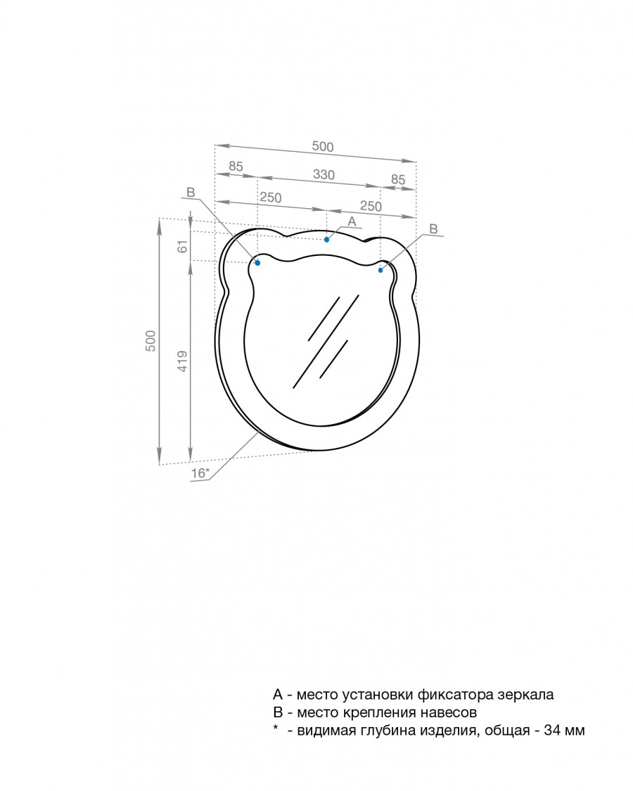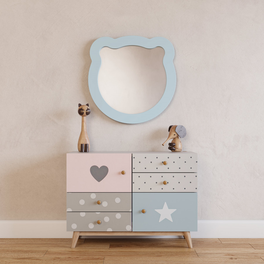 Зеркало КАСПЕР МИШКА, фигурное, голубой матовый