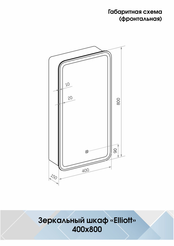 Зеркало-шкаф Elliott LED 400х800 правый