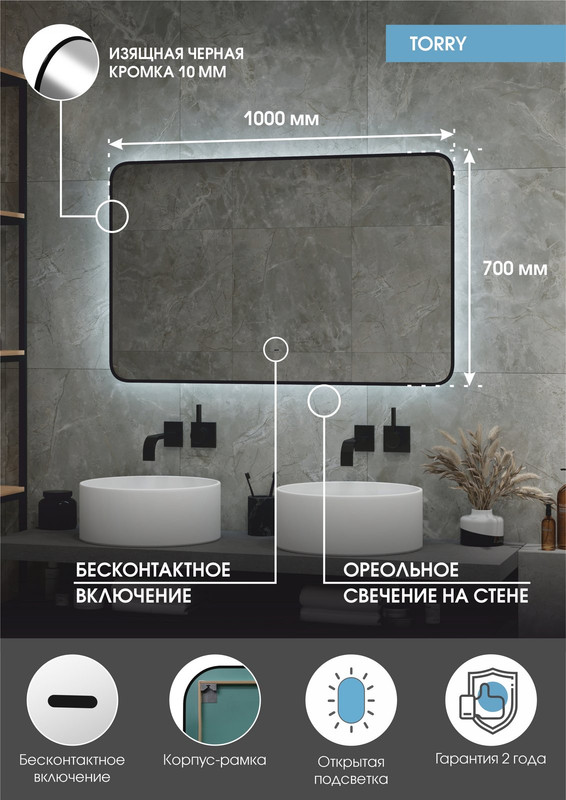 Зеркало Torry 1000х700 бесконтактный сенсор