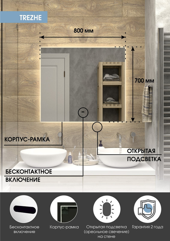 Зеркало Trezhe Led 800х700 бесконтактный сенсор