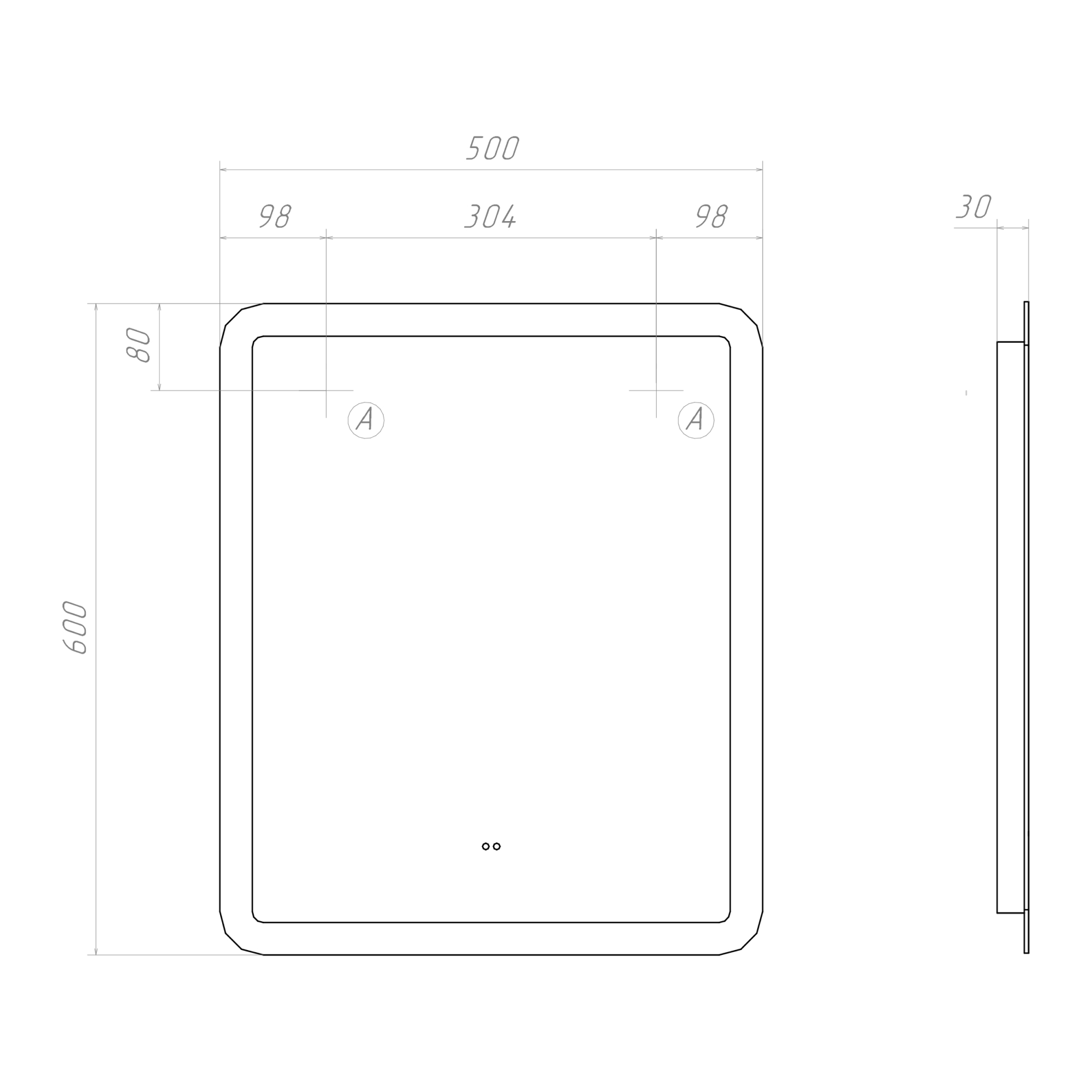Зеркало с подсветкой VIGO Wing Classic 500. Бесконтактное управление (на взмах), светодиодная подсветка.