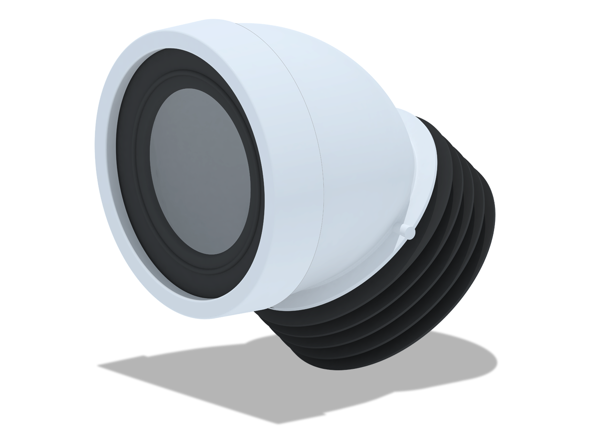 - Угол 45° для значительного изменения направления выпуска унитаза.