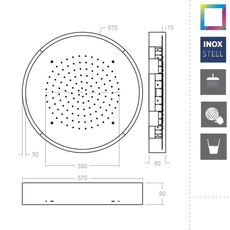 Потолочный душ, встроенный HROMOTERAPIA RELED570