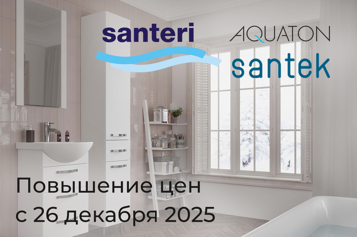 С 26 декабря 2025 года ожидается повышение цен на весь ассортимент SANTEK, SANTERI, AQUATON в среднем на 8%.