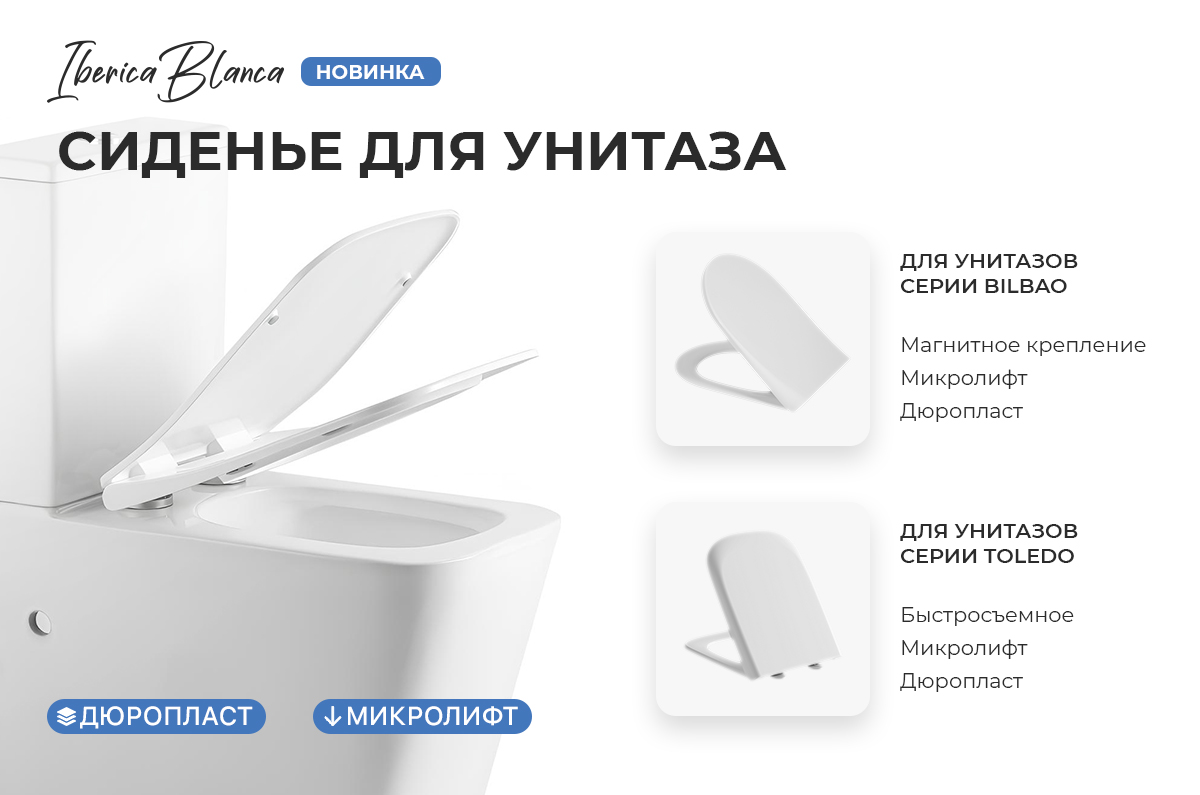 - Сиденье для унитаза IBERICA BLANCA BILBAO ALTO, MAXI тонкое с магнитным держателем дюропласт soft close белое (IB.ЗИП.0024)
